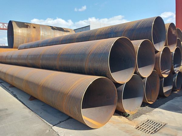 15128769799φ426*10材质Q235B螺旋钢管带钢对焊焊缝及与螺旋焊缝相交的丁型接头的所在管,全部经过X射线电视或拍片检查。每根钢管经过静水压试验,压力采用径向密封,试验压力和时间都由钢管水压微机检测装置严格控制,试验参数自动打印记录。原材料即带钢卷,焊丝,焊剂,在投入前都要经过严格的理化检验。带钢头尾对接,采用单丝或双丝埋弧焊接,在卷成钢管后采用自动埋弧焊补焊。成型前,带钢经过矫平、剪边、刨边,表面清理输送和予弯边处理。采用电接点压力表控制输送机两边压下油缸的压力,确保了带钢的平稳输送。采用外控或内控辊式成型,采用焊缝间隙控制装置来保证焊缝间隙满足焊接要求,管径,错边量和焊缝间隙都得到严格的控制。内焊和外焊均采用美国林肯电焊机进行单丝或双丝埋弧焊接,从而获得稳定的焊接规范。焊完的焊缝均经过在线连续超声波自动伤仪检查,保证了螺旋焊缝的无损检测覆盖率。若有缺陷,自动报警并喷涂标记,生产工人依此随时调整工艺参数,及时消除缺陷。采用空气等离子切割机将钢管切成单根,切成单根钢管后,每批钢管头三根要进行严格的首检制度,检查焊缝的力学性能,化学成份,溶合状况,钢管表面质量以及经过无损探伤检验,确保制管工艺合格后,才能正式投入生产。焊缝上有连续声波探伤标记的部位,经过手动超声波和X射线复查,如确有缺陷,经过修补后,再次经过无损检验,直到确认缺陷已经消除。