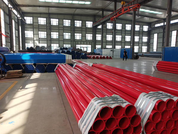 消防给水涂塑复合钢管外观颜色为红色,选用无缝钢管、直缝高频焊钢管和螺旋焊管为工作钢管,在钢管内外表面进行环氧树脂粉末热熔结技术加工而成。消防给水涂塑复合钢管选材很重要,工作钢管进厂要进行复检,对钢管的几何尺寸、化学成分和力学性能进行全面复检,复检合格后方可使用。钢管在未进行涂塑之前,应对钢管进行除锈,通过除锈设备对钢管的内外表面进行除锈,锚纹深度应达到使用要求Sa2.5级。消防给水涂塑复合钢管根据工程要求进行加工,进行不同连接形式的管端预加工,如法兰连接时要先在钢管两端焊接法兰,焊接焊缝应均匀、光滑;沟槽连接时要先在压槽设备上进行压槽,压槽深度和宽度要符合技术要求。消防给水涂塑复合钢管的定尺长度由采购单位与加工厂协商,定尺长度为6米/根,经供需双方协商也可提供其它长度的涂塑复合管。钢管的外径和壁厚应按照需方要求,满足消防给水涂塑复合钢管的压力要求,成品钢管应提供原始材质单和质量证明书。如用户对涂塑复合管涂层厚度提出异议,供需双方应共同去第三方检测机构进行复检,以复检结果为准。如采购方要求驻厂监造,生产方应积极配合,采购方对生产工艺不满,生产方应进行整改,直至采购方满意为止。生产方应对所生产的涂塑钢管按照规格型号进行分类,并做好标识,在成品涂塑钢管未发运之前,生产方应妥善存放。生产方在接到采购方通知后,按照不同规格型号进行发货,装车时应提前对成品钢管进行包装,并对钢管进行防护措施,避免损伤钢管。在涂塑复合钢管运至施工现场,供需双方按照发货清单对货物进行清点,数量无误后方法签字。